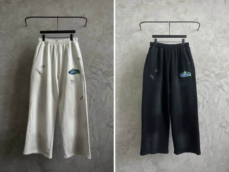 Balenciaga distressed letter embroidered straight-leg trousers-5450