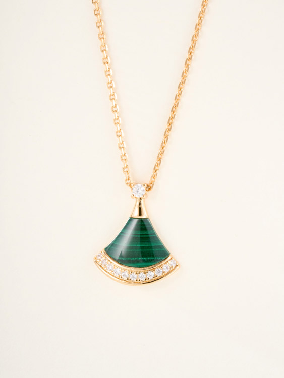 Bulgari fan white mother-of-pearl diamond rose gold carnelian blue green pendant necklace-3767