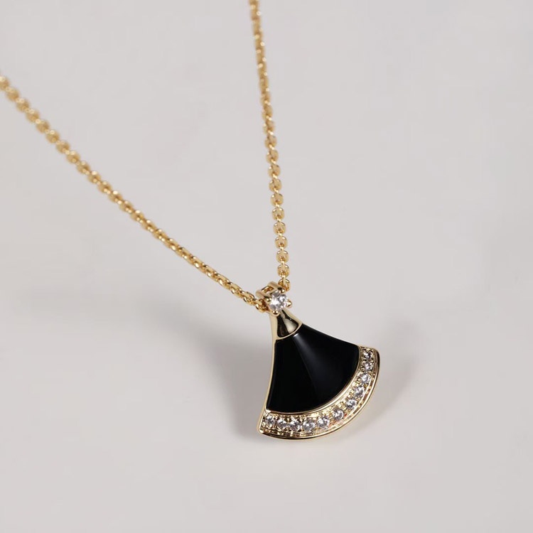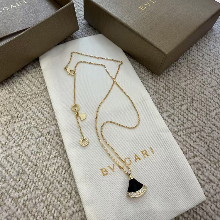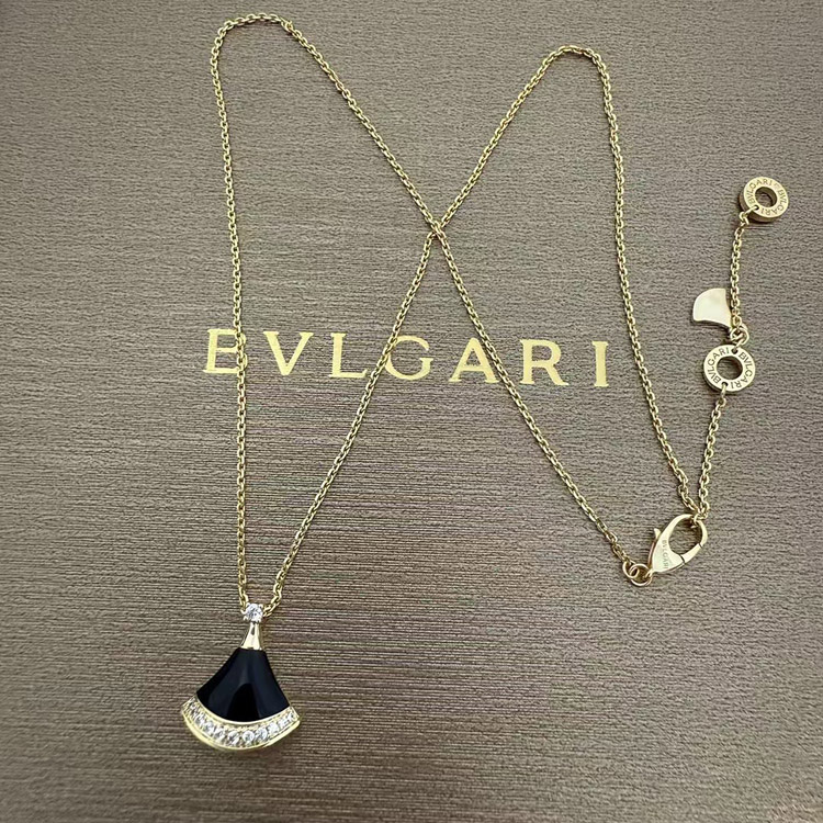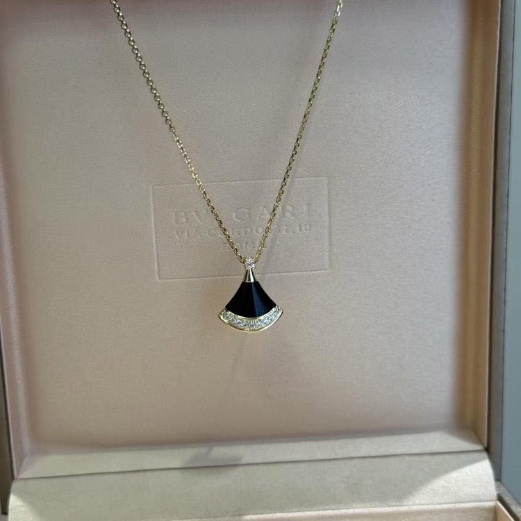 Bulgari New Color Black Agate Fan Necklace-3584