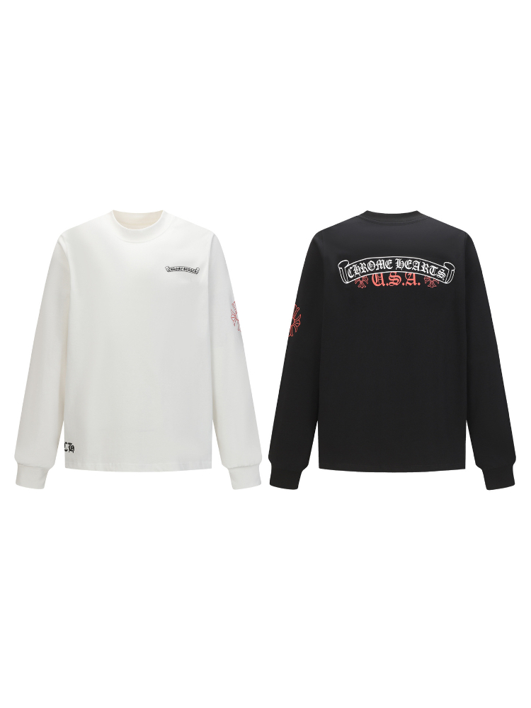 Home > Chrome Hearts CH Cross Sanskrit Print Double-Layer Cotton Long-Sleeve T-Shirt-5437