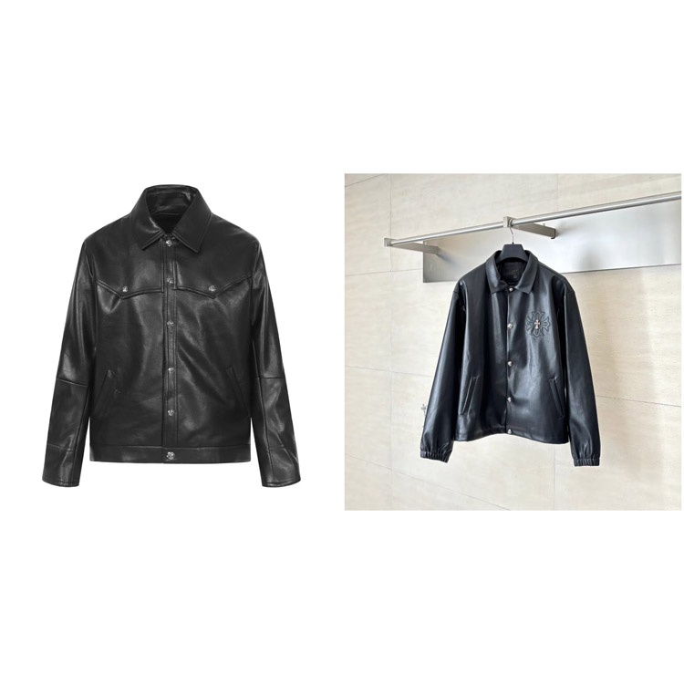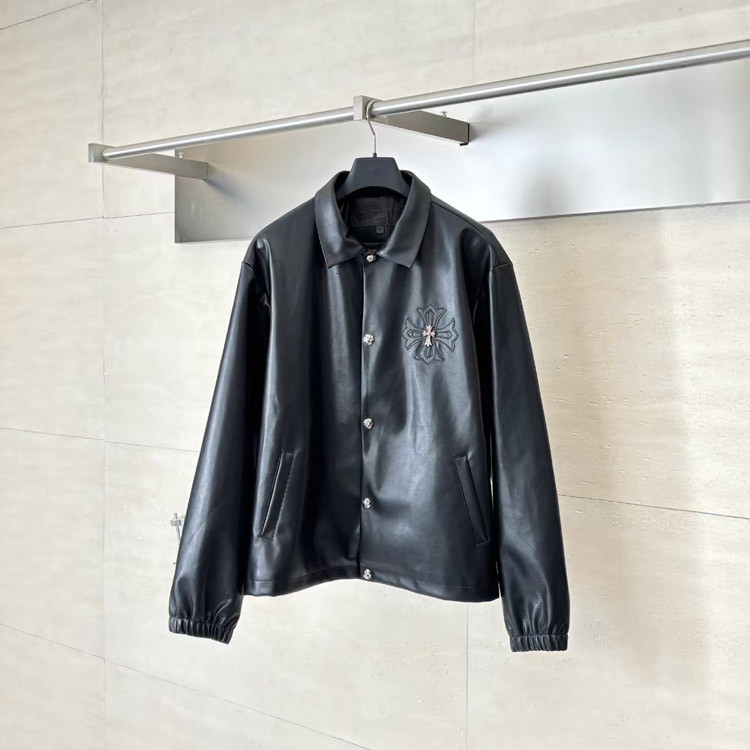 Chrome Hearts CH New Style Leather Jacket with Large Embroidered Arms-5009