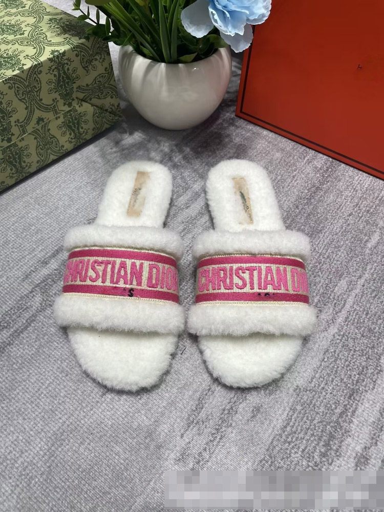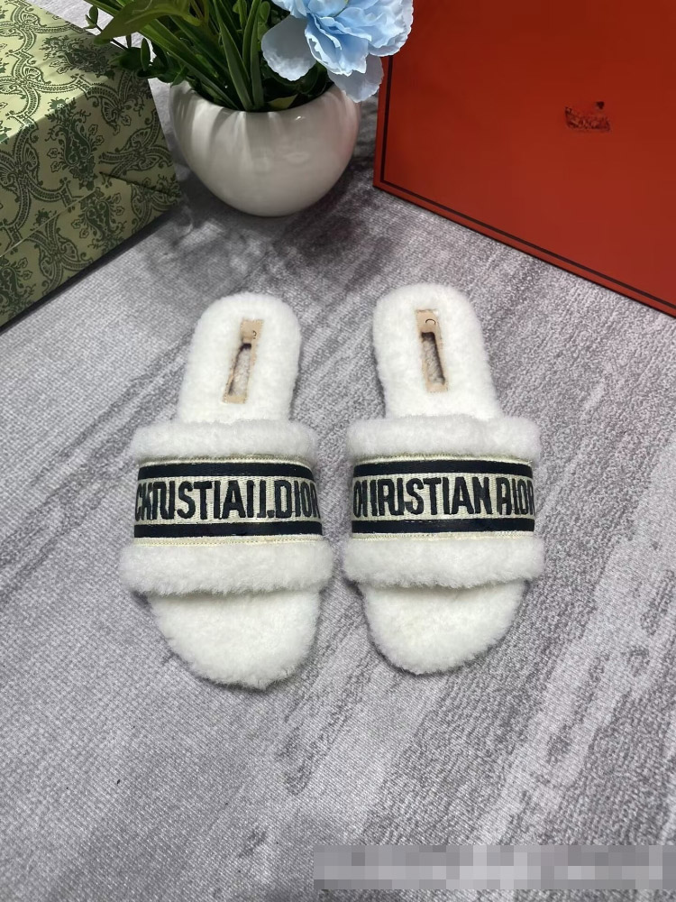Dior embroidered shearling platform mules-5687