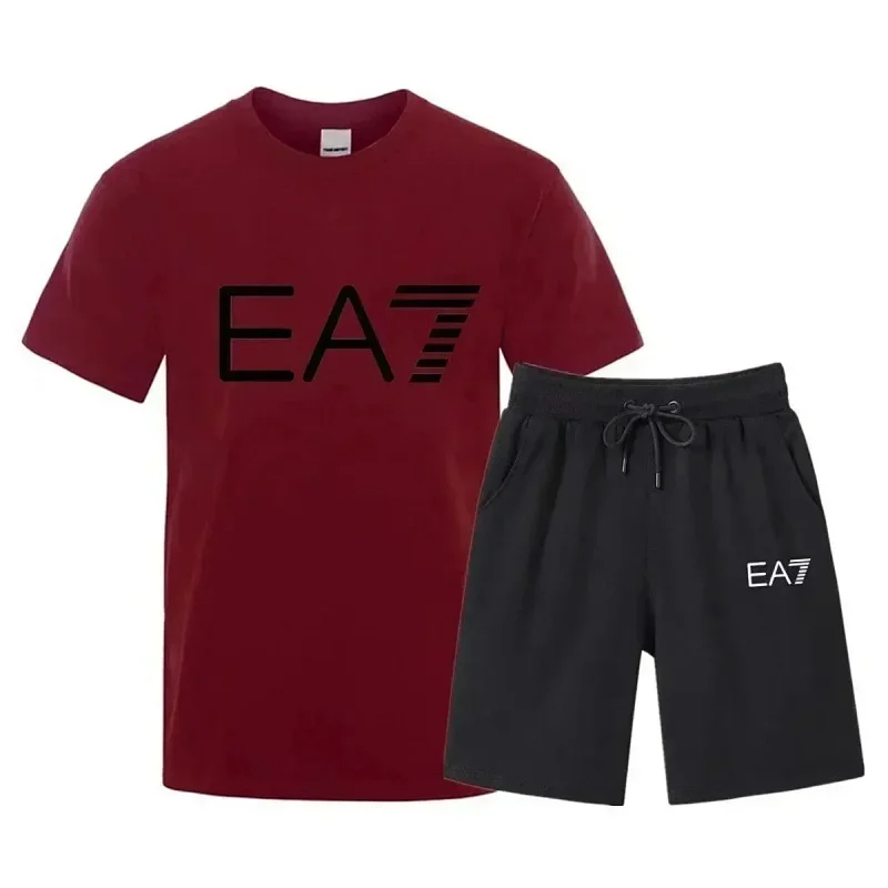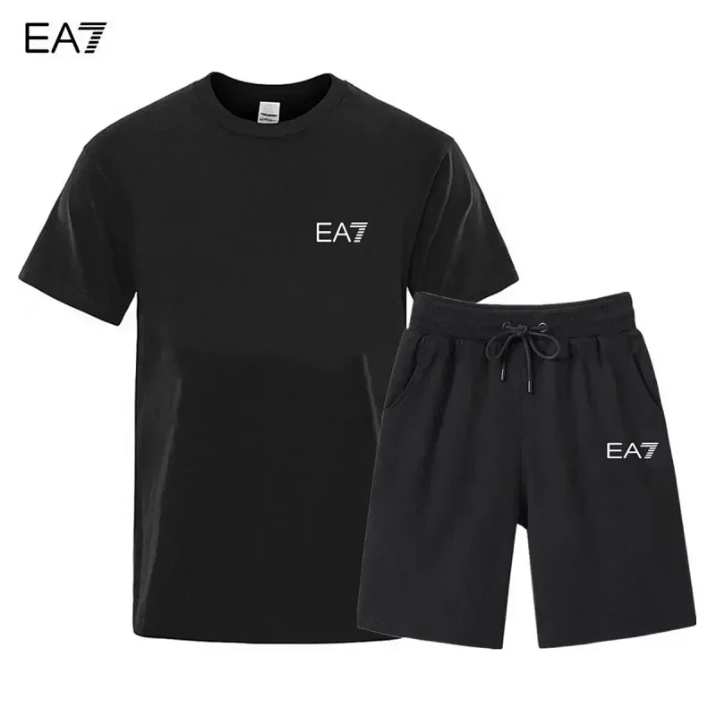 EMPORIO ARMANI EA7 Lettering Logo Round Neck Short Sleeve T-Shirt Shorts Set-2751