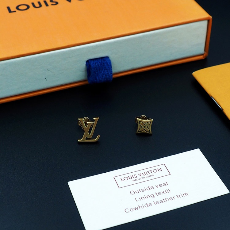 Louis Vuitton LV Letter Floral Brass Distressed Earrings-3575