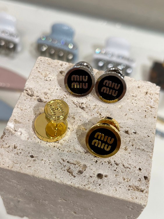 MIUMIU black enamel letter metal round button earrings-3893