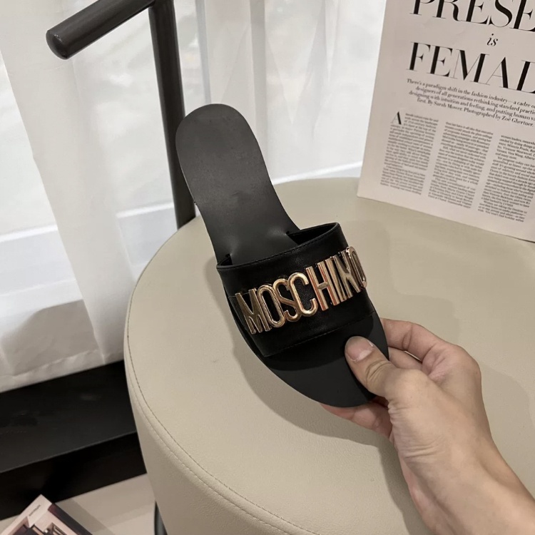 Moschino colorful leather round-toe flat sandals-5657