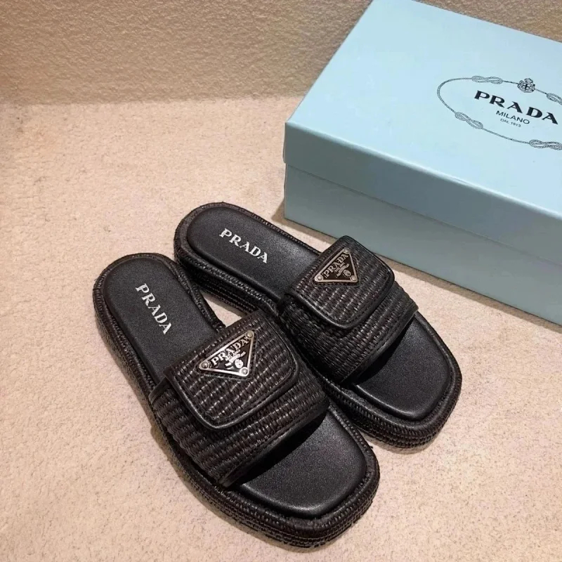Prada's new thick-soled Roman woven European and American style height-enhancing sandals and slippers(40 styles)-2339