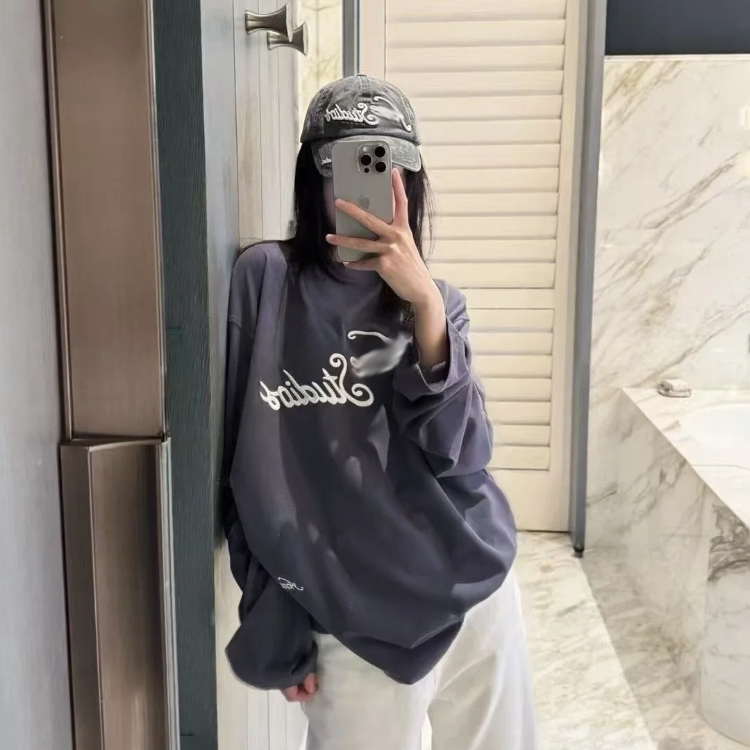 Acne Studios 3D embroidered cursive signature long-sleeved T-shirt-5923