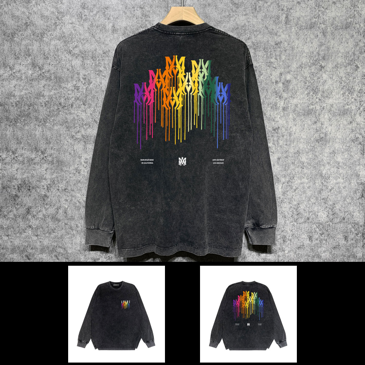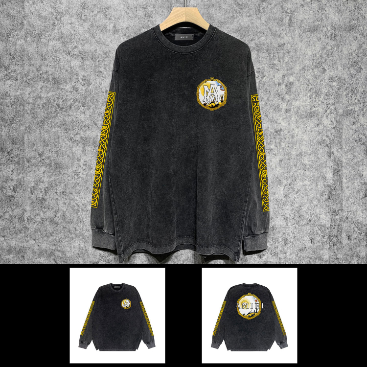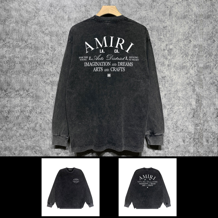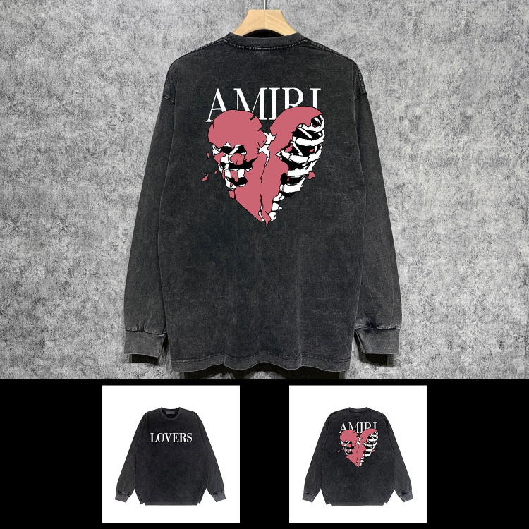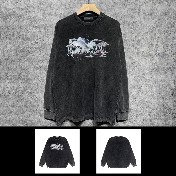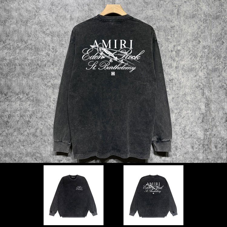 AMIRI popular distressed wash printed long-sleeved T-shirt-5864