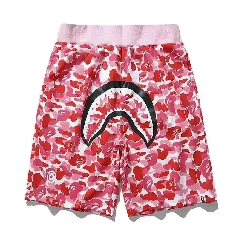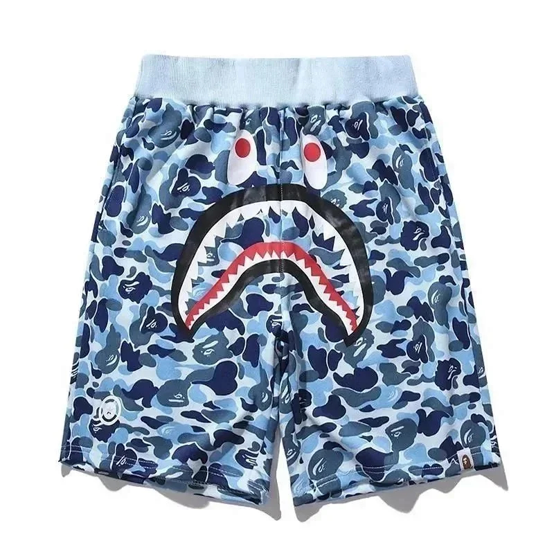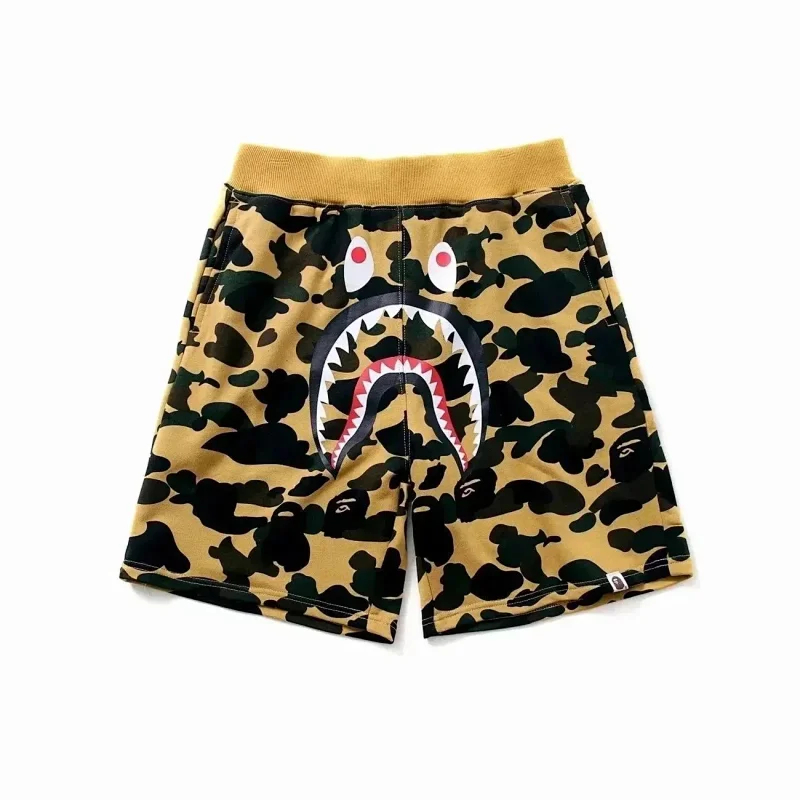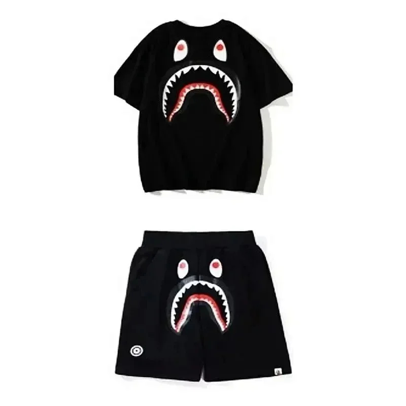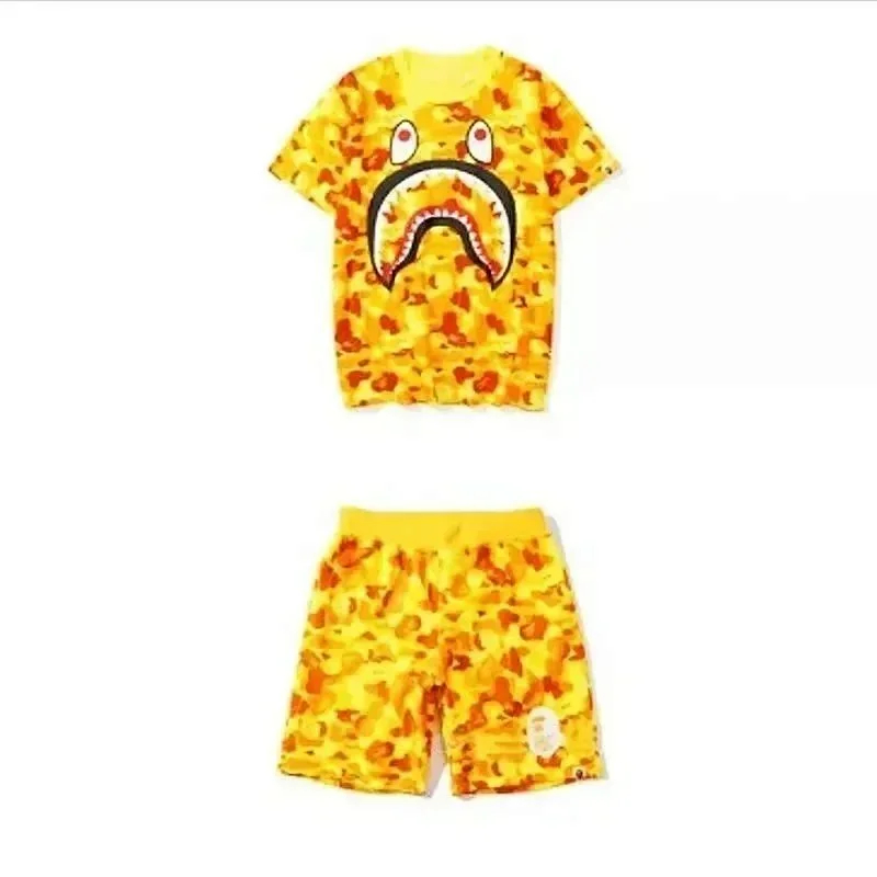 Bape shark zipper letter full print camouflage pattern short-sleeved T-shirt shorts set-2818