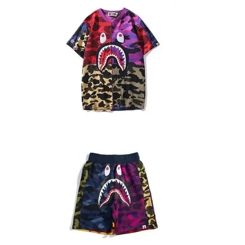 Home > Bape shark zipper letter full print camouflage pattern short-sleeved T-shirt shorts set-2818