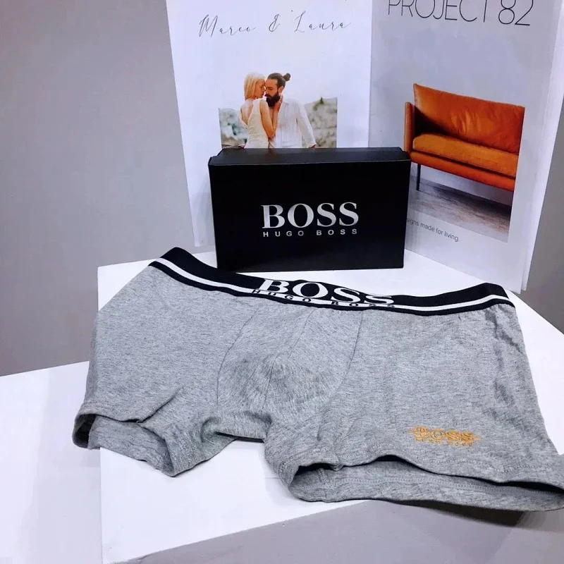 Boss Men's stylish solid color logo embroidered breathable briefs boxer briefs (mens 3pcs)-2392