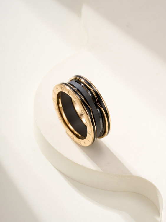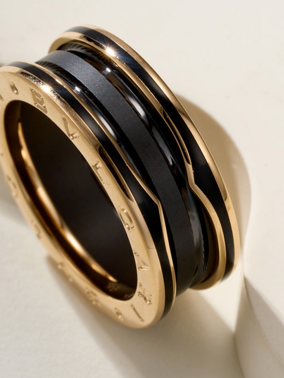 Bulgari ceramic rose gold ring-3839