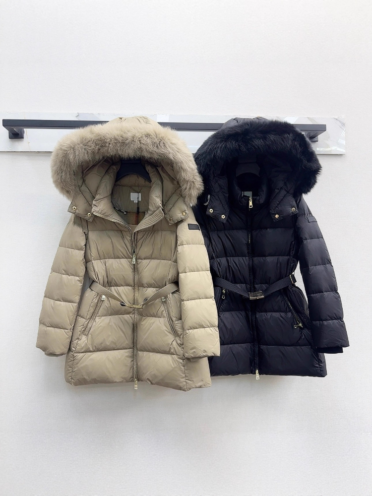 Burberry fitted, slimming, mid-length down jacket with fur collar and 90% white goose down filling-5338