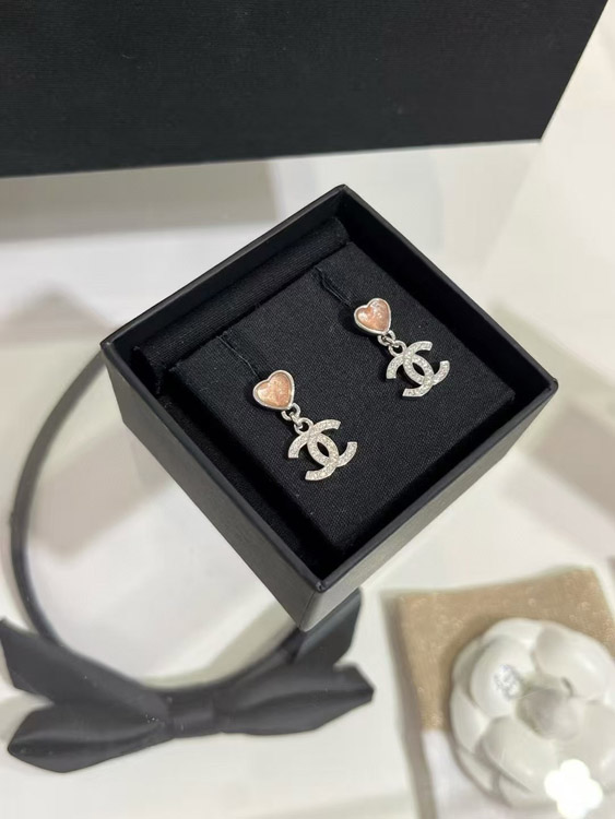 Home > Chanel pink little heart silver full diamond double C earrings-3747