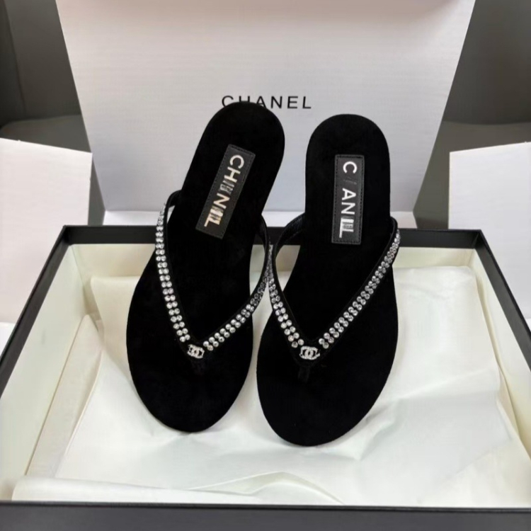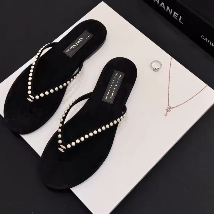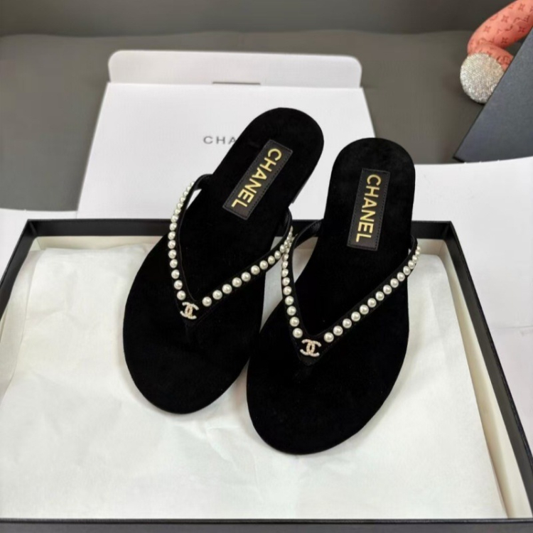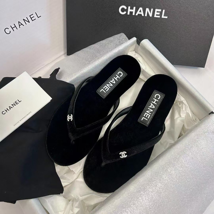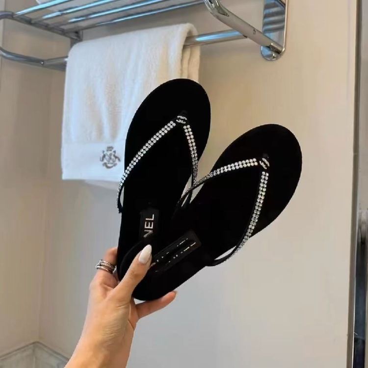 Chanel rhinestone and pearl embellished velvet flat thong sandals-5697