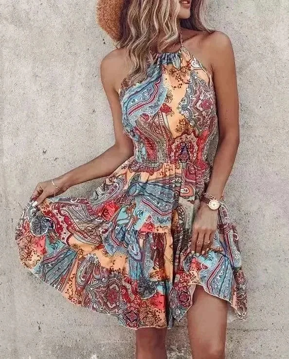 European and American summer off-the-shoulder halter neck loose women's dress-2470