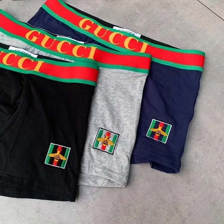 GUCCl Men's Fashion Solid Color Briefs Boxer Briefs 3pcs-2375