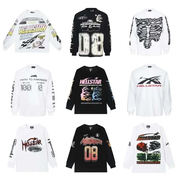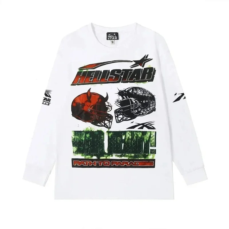 Ins same style Hell Star Retro Print Men's and Women's Loose Casual Long Sleeve T-shirt-2514