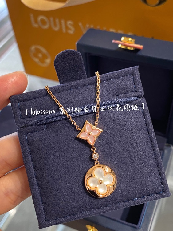 Louis Vuitton LV rose gold two-tone shell double flower necklace-3582