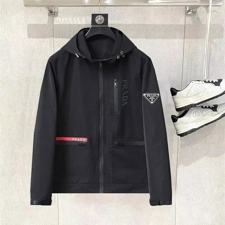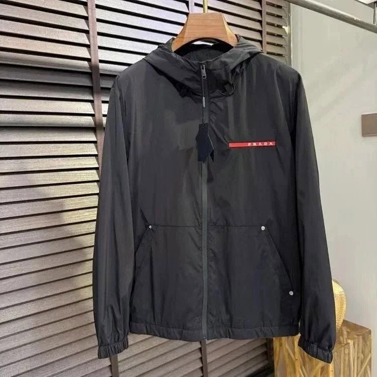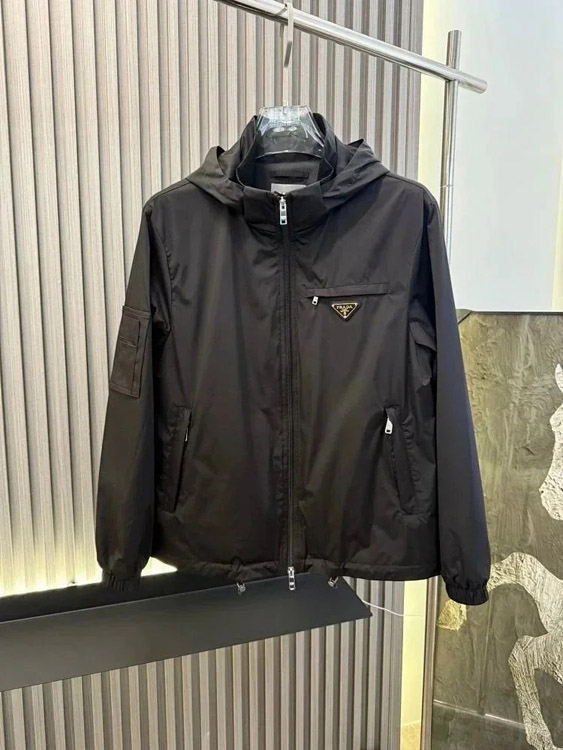 PRADA Prada Re-Nylon SS22 Logo solid color hooded waist jacket-4321
