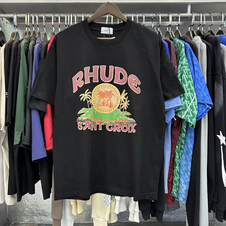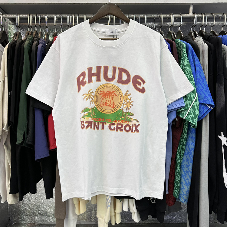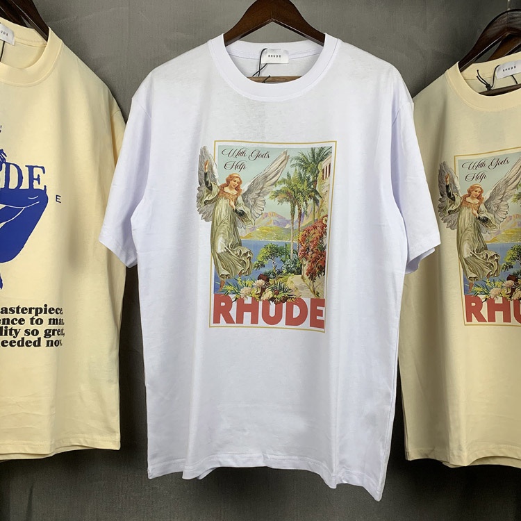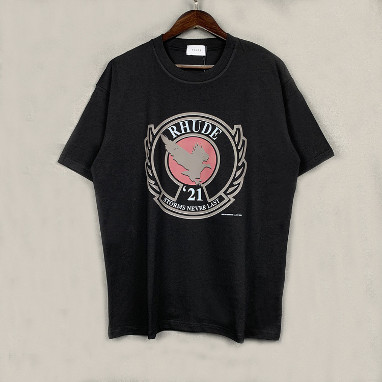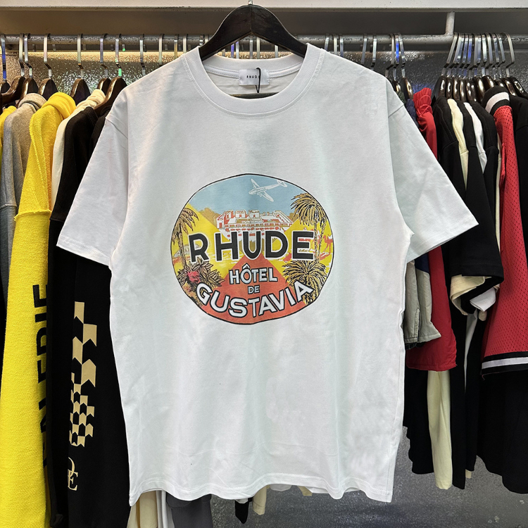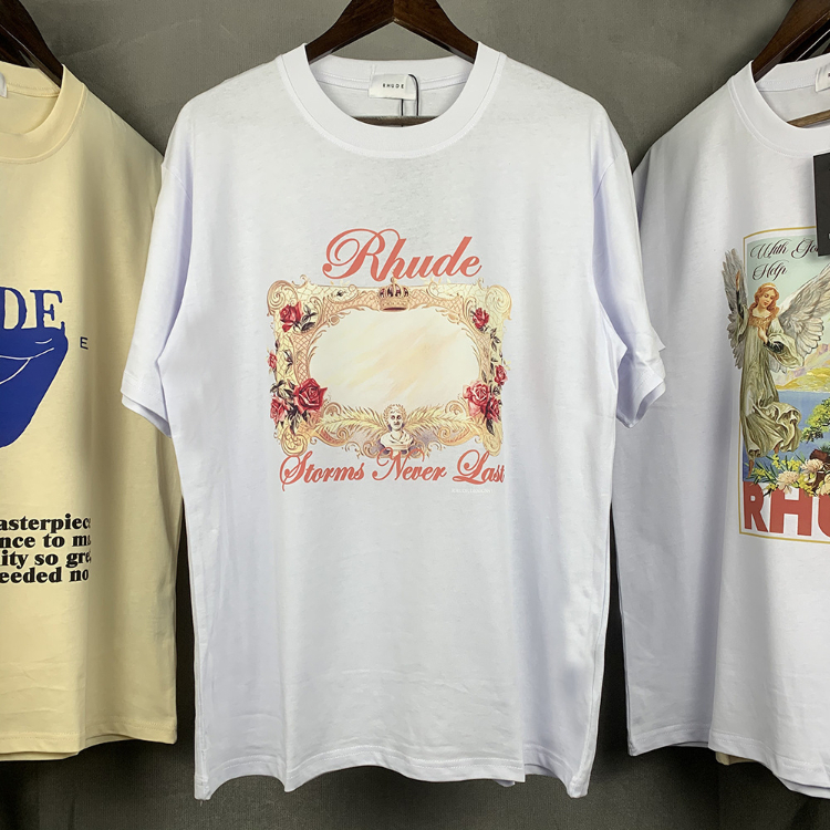 Rhude loose-fitting printed crew neck short-sleeved cotton T-shirt-5222