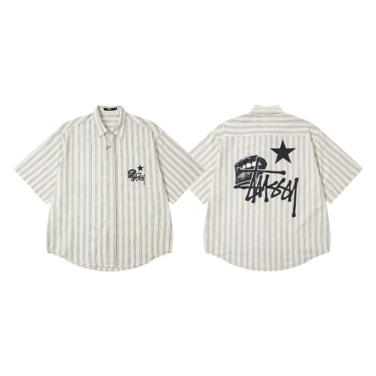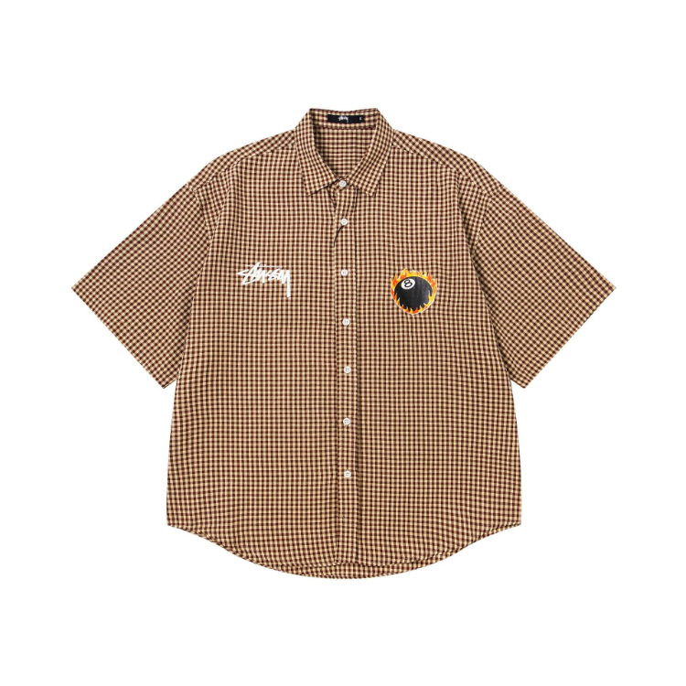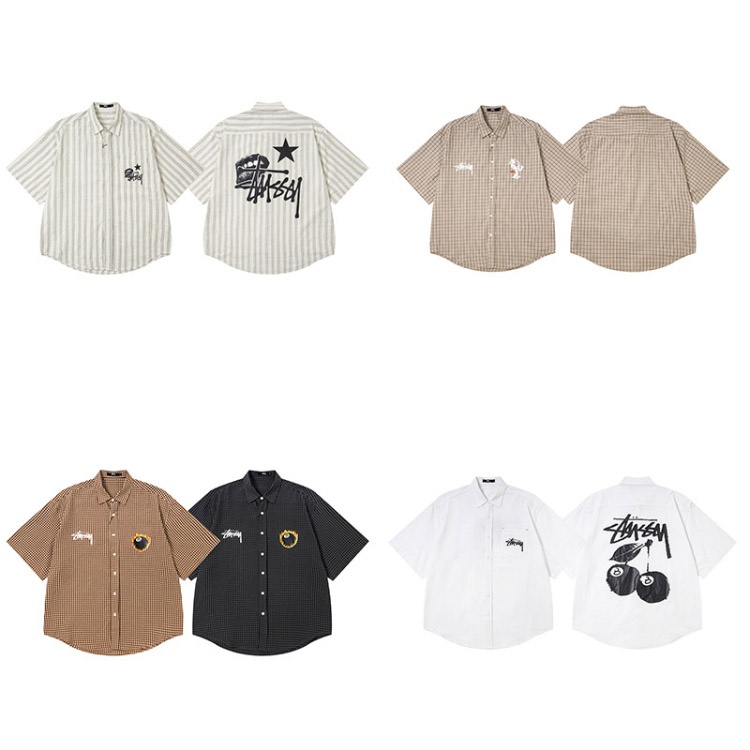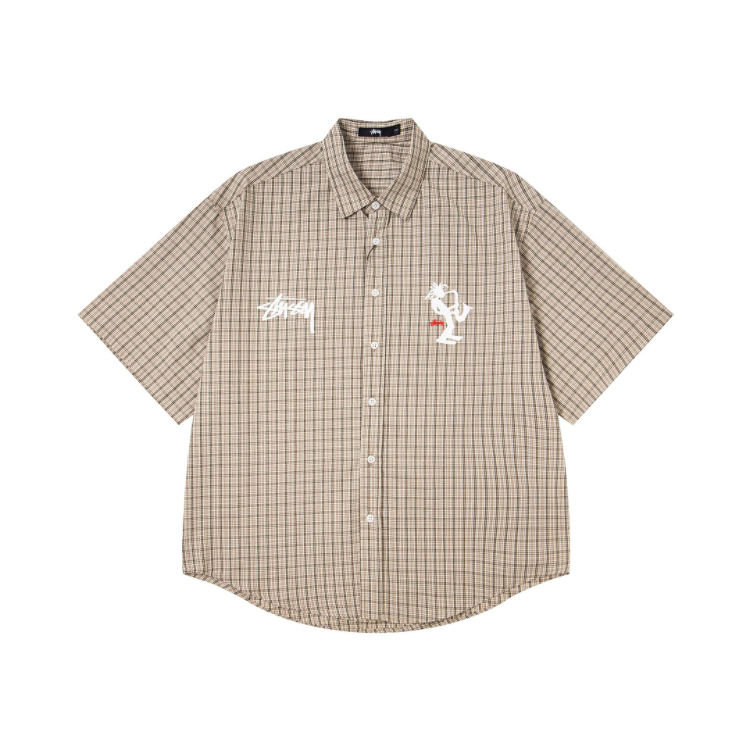 Stussy new loose-fitting plaid preppy style shirt-5276